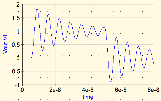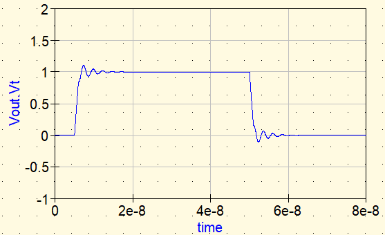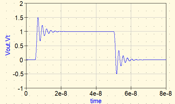 Si el aumento de impedancia fuera la única razón, una reflexión más fuerte haría que el ringing se intensificara (aumentando el factor Q). Para aclararlo, primero verificamos el caso de insertar un inductor ideal en uSimmics.