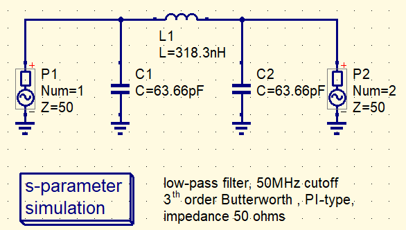 放置所需的组件以创建电路图。这里,我们将创建一个之前文章中介绍的三阶巴特沃斯型LC滤波器。
